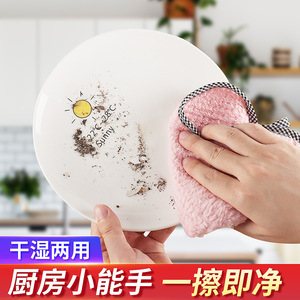 菠萝格可挂式珊瑚绒抹布厨房清洁洗碗吸水不掉絮加厚毛巾去污家用