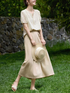 新しい中国風の立体刺繍フラワーシャツ女性夏 2025 新しいシンプルなデザインセンスエレガントな半袖多用途