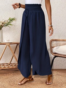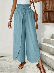 2025 レディース エレガント スリット パンツ ルーズ ウエスト タイ - 春、夏、秋の軽量で通気性のあるカジュアル パンツ、