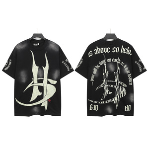 クロスボーダー Hellstar Tシャツ 2025年夏 欧米トレンドブランド レタープリント ゆったり半袖Tシャツ 男女兼用