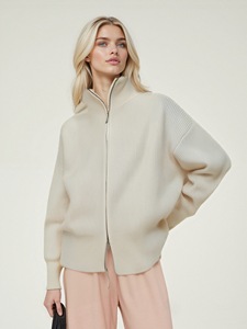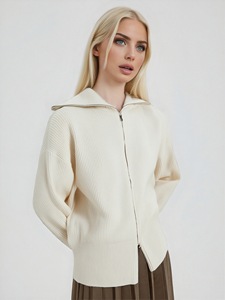 秋冬の女性用クロスボーダーソリッドカラーセーター、新しいヨーロッパとアメリカのラペルデザイン、ジッパー付きレイジーニットカーディガン、女性用ジャケット