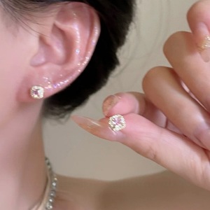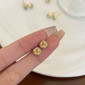 s925 シルバー針イヤリング女性のイエローダイヤモンドシュガーキューブイヤリング 2025 新しいホットスタイルイヤリングライト高級ハイエンドジュエリー