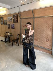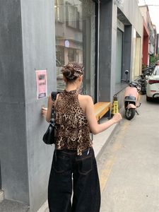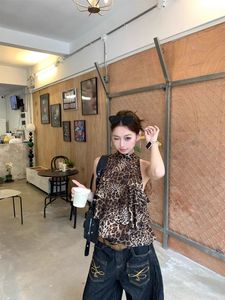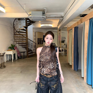 デザインされた新しいホットガールヒョウ柄フリルホルターネックベストレディース夏スリムで多用途なシックなトップ