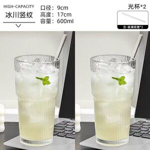 インスタイル縦縞ガラス飲料カップ蓋付き高価値家庭用ドリンクカップ夏の大容量ウォーターカップ