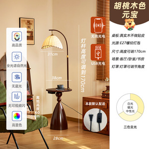 ウォールナット色のランプ本体 + 携帯電話のワイヤレス充電をサポート + 元宝ランプシェード