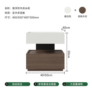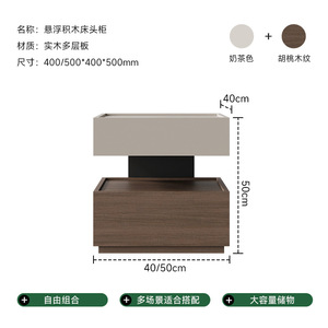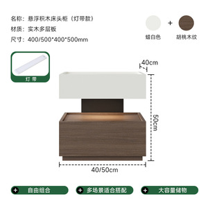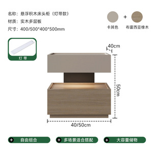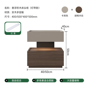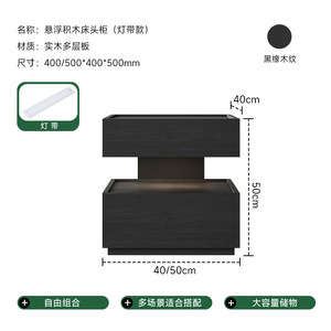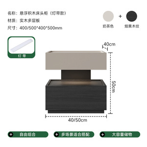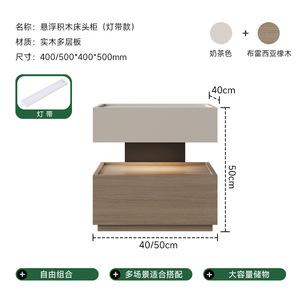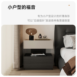 イタリア風ミニマリストベッドサイドテーブル、一体型ライト付き、浮遊式ベッドサイドキャビネット、軽奢で高級感のある主寝室収納キャビネット