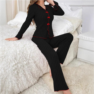 ヨーロッパとアメリカのクロスボーダーパジャマ女性用ツーピースセット秋と冬のホームカジュアルファッションウェアラブルホーム服セット女性用