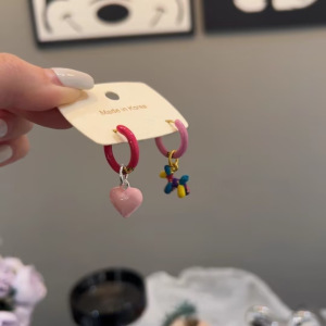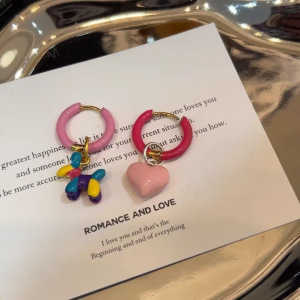 韓国東大門カラフルな滴り釉愛バルーン犬耳バックル甘いガーリーハートイヤリングテクスチャイヤリング