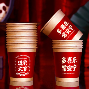 新築祝い、引っ越しセレモニー用品、部屋の装飾、使い捨て紙コップ、厚みのある新しい家の赤いカップ