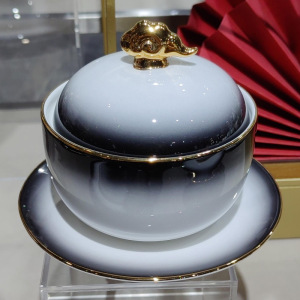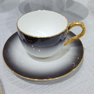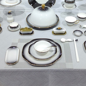 ホテルクラブ高級ボーンチャイナ食器、金縁クリエイティブ白黒プレート、ボーンチャイナプレート、羽根ボウル、スプーン、カップ、箸、テーブルセット