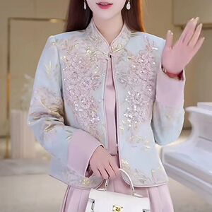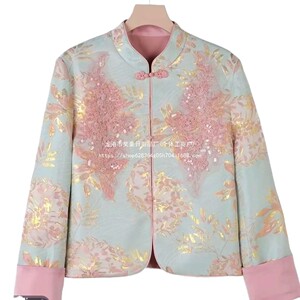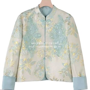 2025新款织锦提花重工刺绣国风盘扣立领气质唐装上衣复古短款外套