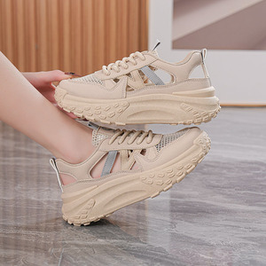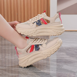 2025 夏の新スタイル中空お父さん靴女性のメッシュ通気性イントレンディな厚底カジュアルスポーツシューズ C037
