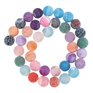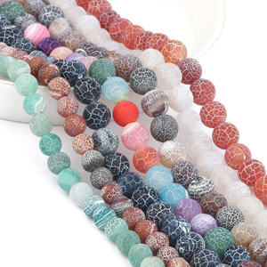 天然石玛瑙七彩磨砂风化石珠子DIY饰品配件 裂纹磨砂散珠混批