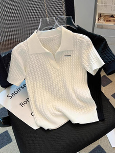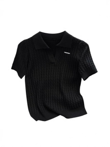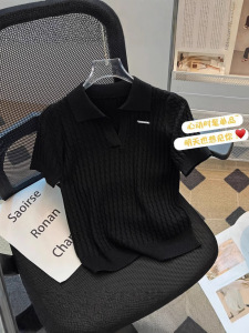 Gejia モールと同じスタイルの女性の 2025 夏デザインラペルアイスシルクスリムニットボトム夏半袖