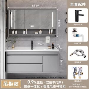 アップグレードされた[タオルバー]ダークグレースマートミラーキャビネットスタイルウォールキャビネット-90cm+セラミック洗面器+ハードウェアアクセサリー[設置込み]-