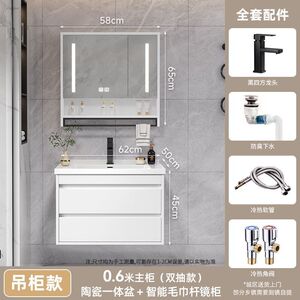 アップグレードされた[タオルバー]ホワイトスマートミラーキャビネットスタイルウォールキャビネット-60cm+セラミック洗面器+ハードウェアアクセサリー[取り付けなし]-