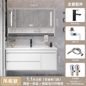 アップグレードされた[タオルバー]ホワイトスマートミラーキャビネットスタイルウォールキャビネット-110cm+セラミック洗面器+ハードウェアアクセサリー[取り付けなし]-