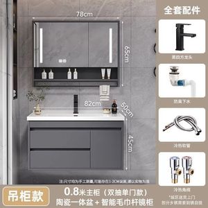 アップグレードされた個別キャビネット [付属品なし洗面器] - 80cm + セラミック洗面器 + ハードウェア付属品 [設置込み] -