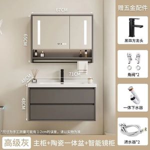 アップグレードされた[タオルバー]ダークグレースマートミラーキャビネットスタイルウォールキャビネット-70cm+セラミック洗面器+ハードウェアアクセサリー[設置込み]-