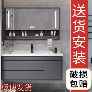 バスルーム無垢材多層シンプルなバスルームキャビネット組み合わせセラミック洗面器一体型洗面器洗面台キャビネット洗面台