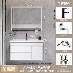 アップグレードされた個別のキャビネット [付属品なしの洗面器] - 80cm つのセラミック洗面器 + ハードウェア付属品 [取り付けなし] -