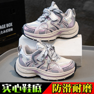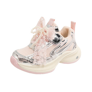 子供用スポーツシューズ、女の子用メッシュシューズ、2025年春秋の新しい通気性のあるカジュアルシューズ、多用途の柔らかい底の女の子用お父さん靴