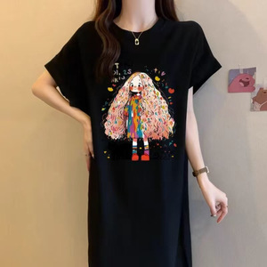 プラスサイズの女性のTシャツドレス夏韓国風小柄な人向けの服、少し太ったmmのお腹をカバーし、スリムに見せるロングスカート