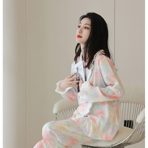 新しいスタイルの女性用パジャマ、春と秋のアイスシルク長袖、軽やかで甘い、ネットで人気、高級感、外出着としても使えるホームウェアセット