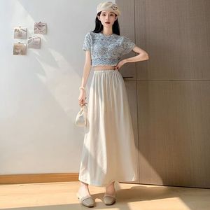 新中式国风提花醋酸缎面半身裙女夏季新款松紧高腰垂感a字长裙子