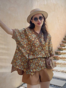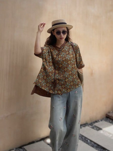 南油批发2025年夏季新款 真丝混纺人丝香云纱小上衣衬衫 复古时尚