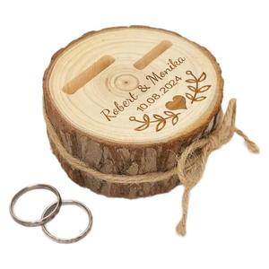 国境を越えた売れ筋パーソナライズされた木彫りレトロ牧歌的な田舎の結婚指輪ボックス木製クリエイティブファーウッド