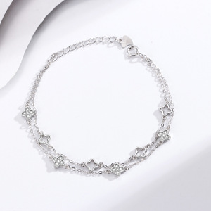 凯依纯银四叶草双层手链女幸运轻奢简约S925手饰ins风情人节礼物
