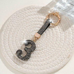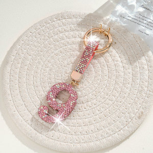 厂家批发软陶数字钥匙扣镶钻可爱个性包包挂件汽车钥匙链彩色配件