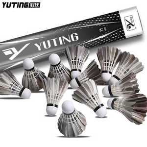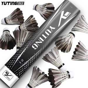 工場直販の高品質バドミントン、16本のアヒルの羽根バドミントン、12個パック、耐久性のあるトレーニング、バケツから開始