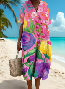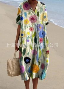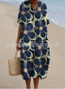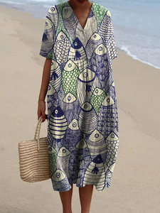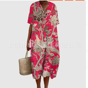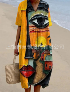2025 クロスボーダー独立系シャツドレスアマゾンレディースカジュアル海洋生物 3D プリント袖ロングスカート女性