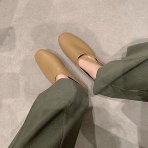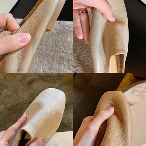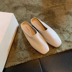 FanGui~牛革つま先スリッポンソフト表面本物のソフトレザー快適なミュラーハーフスリッパ女性用春と夏