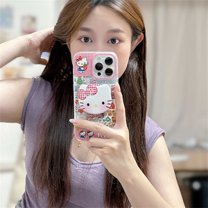 iPhone16 Apple 15ProMax/14/13 携帯電話ケース新モデルに適した赤いチェック柄ステッチ KT 磁気ホルダー