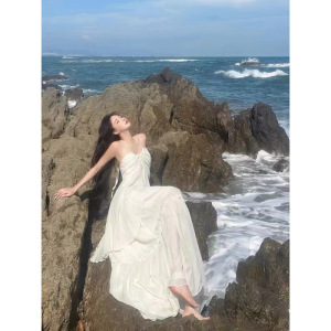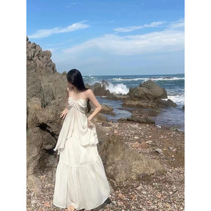 复古浪漫氛围感超仙海边度假抹胸挂脖吊带套装裙大摆飘逸长裙