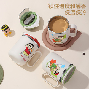 Wow カスタム漫画マグ 304 ステンレス鋼大容量コーヒーカップ蓋付きポータブル断熱ドリンクカップ