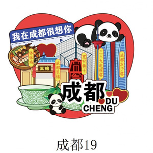 成都冰箱贴城市景区地标旅游文创纪念品木质三层磁吸贴冰箱贴批发
