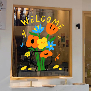 インスタイルの新鮮な花のステッカー花屋衣料品レストランミルクティーショップガラス窓漫画イラスト装飾ステッカー