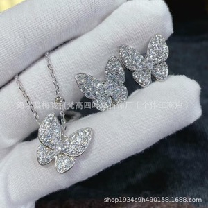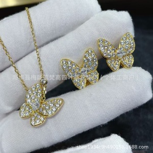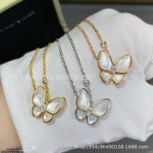 梵家V金高版本CNC精雕扣蝴蝶白贝母项链爆款轻奢时尚满钻蝴蝶项链