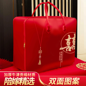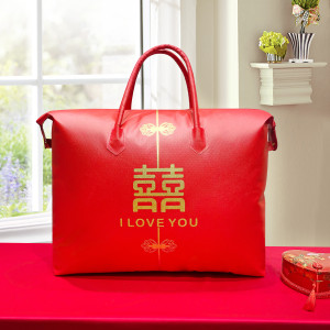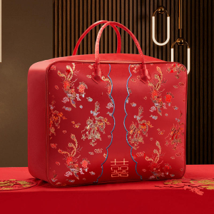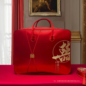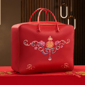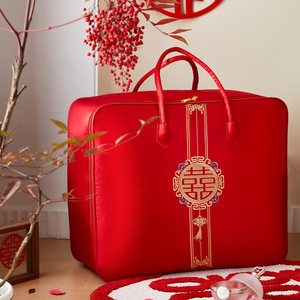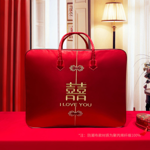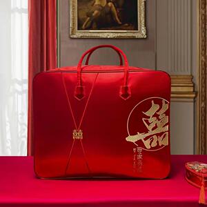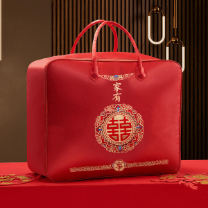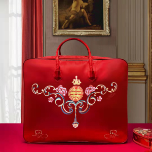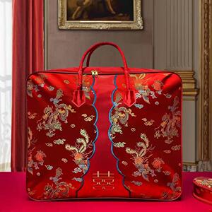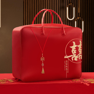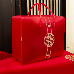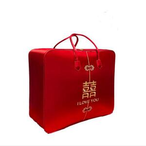 結婚式の4点セット、赤いウェディングキルト収納袋、キルト包装袋、サテンのお祝いのポータブル結婚式の贈り物