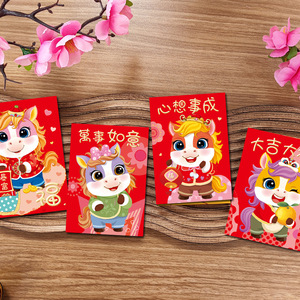 花の季節の赤い封筒 2026 年馬パーソナライズされたクリエイティブな赤い封筒バッグ幸運と幸運新年漫画ラッキーマネー赤い封筒卸売