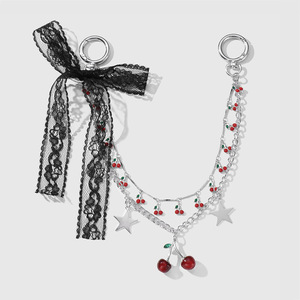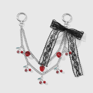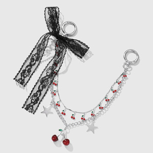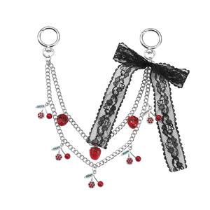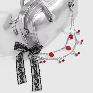 新しい y2k 甘くてクールな個性ダークスタイルブラックレースリボン樹脂ラインストーンチェリーイチゴ DIY バッグペンダント