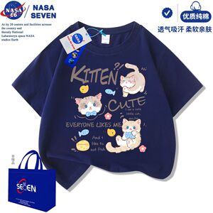 NASA 共同ブランド子供用純綿 Tシャツ夏の新しい漫画猫半袖女の子かわいいドーパミントップス