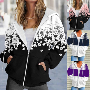 秋冬ヨーロッパとアメリカのクロスボーダーサプライ新しいアマゾンフラワーストライププリントポケットルーズ長袖大きいサイズジャケット
