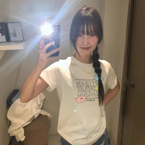 韓国 DAIS*Y X MARITHE 連名半袖ジェニー同スタイルレディース右肩カジュアルショートトップ
