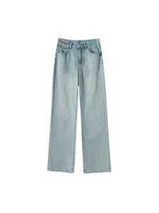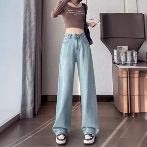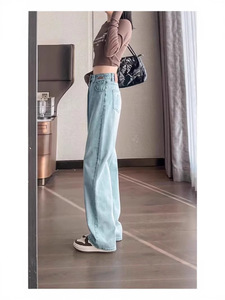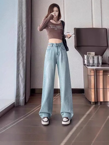 Gejia モールの同じスタイルの女性の 2025 夏氷河ブルーストレートジーンズスリムルーズ刺繍ワイドレッグパンツ