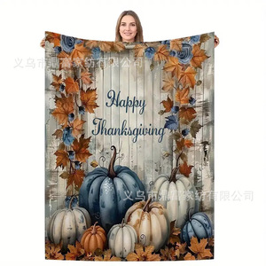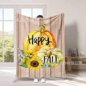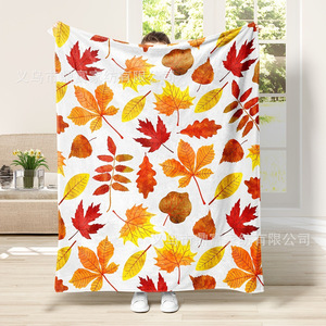 クロスボーダー新秋収穫祭感謝祭ホットセールブランケットカボチャカエデの葉プリントブランケット中庭パーティー装飾